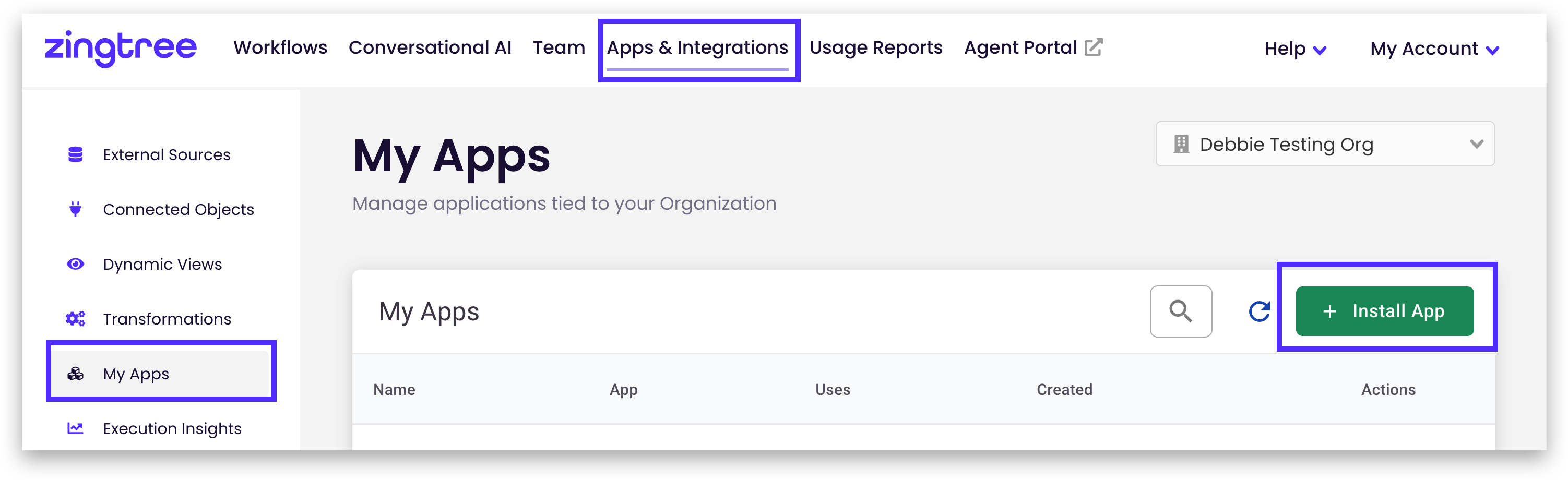 This page lists all of the Apps you have presently installed. You can edit, duplicate, or delete any of them from the list. In the Uses column, you can easily see how many workflows an individual App is being used. Click on the number in the Uses column to see which workflows are using that App.