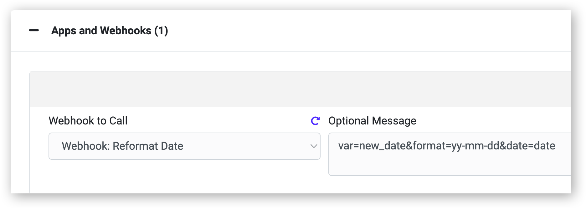 - Pick the Webhook you added previously (Reformat Date , for example).