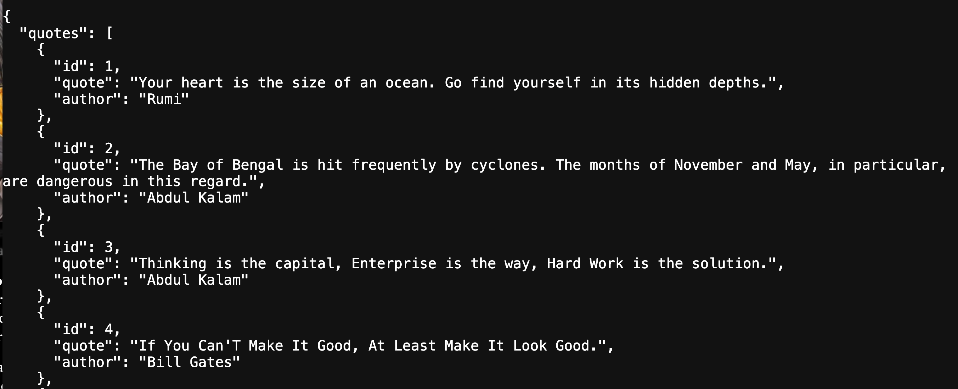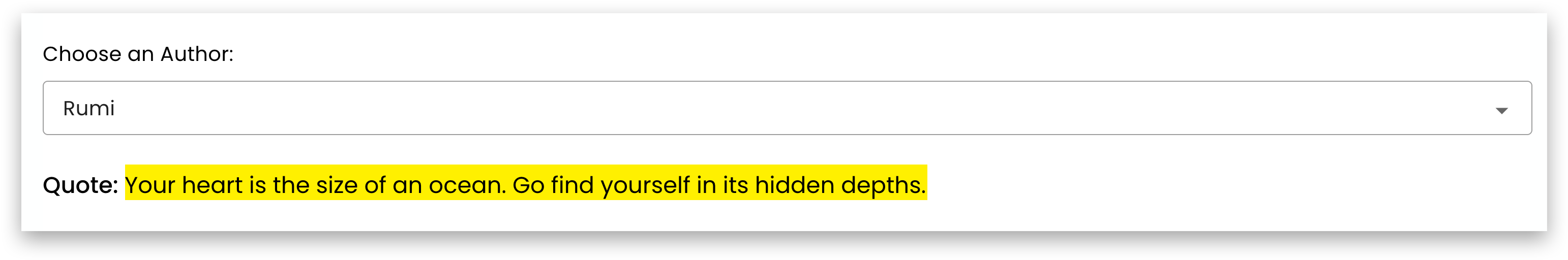 In the example above we want our List Box to display a list of authors that are available in a database of authors and famous quotes. https://dummyjson.com/quotes. This database includes values like these: