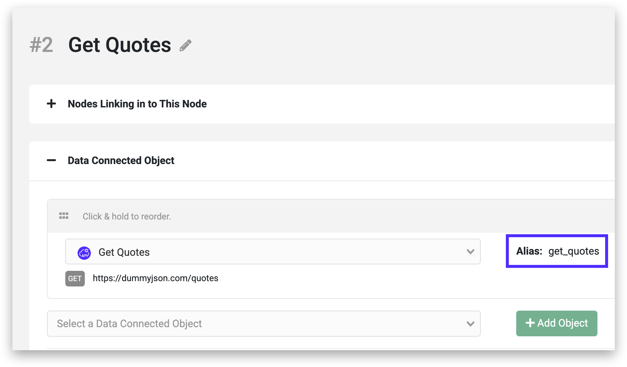 get_quotes. Reference your Connected Object node to get its value:Our variable name becomes