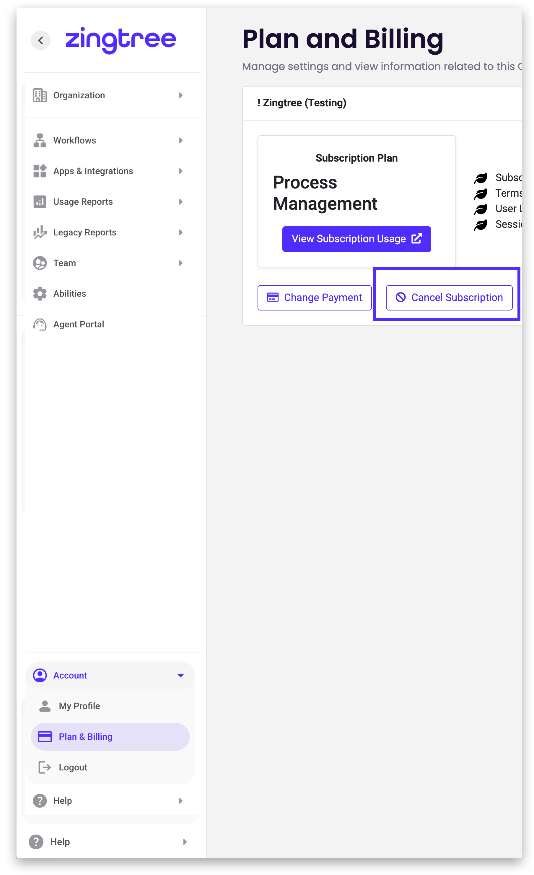 Note: You need to be the Billing Administrator for your account to change subscription status.