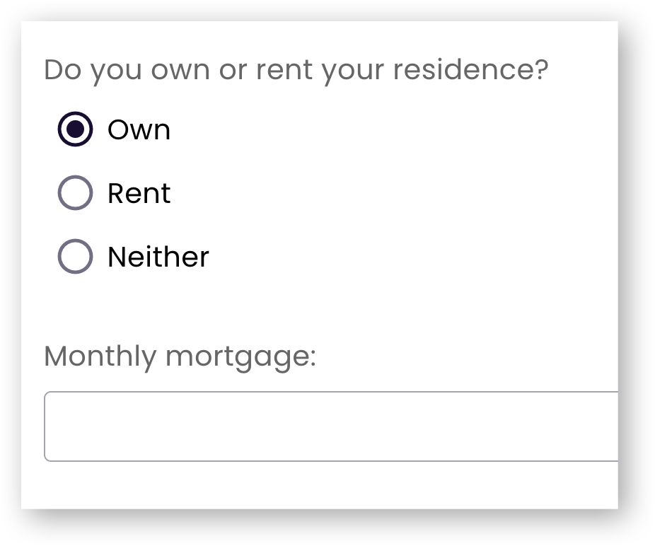 - If you select Own, a field asking for the monthly mortgage amount will appear.