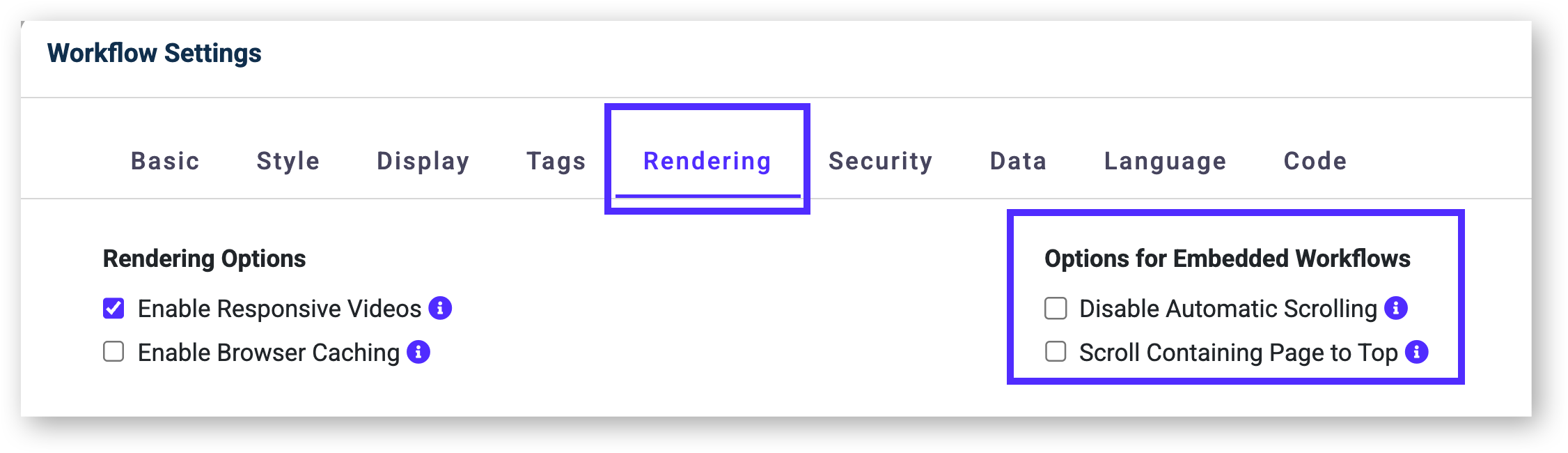 When you're embedding a tree into another web page, each button click can scroll the workflow in different ways: