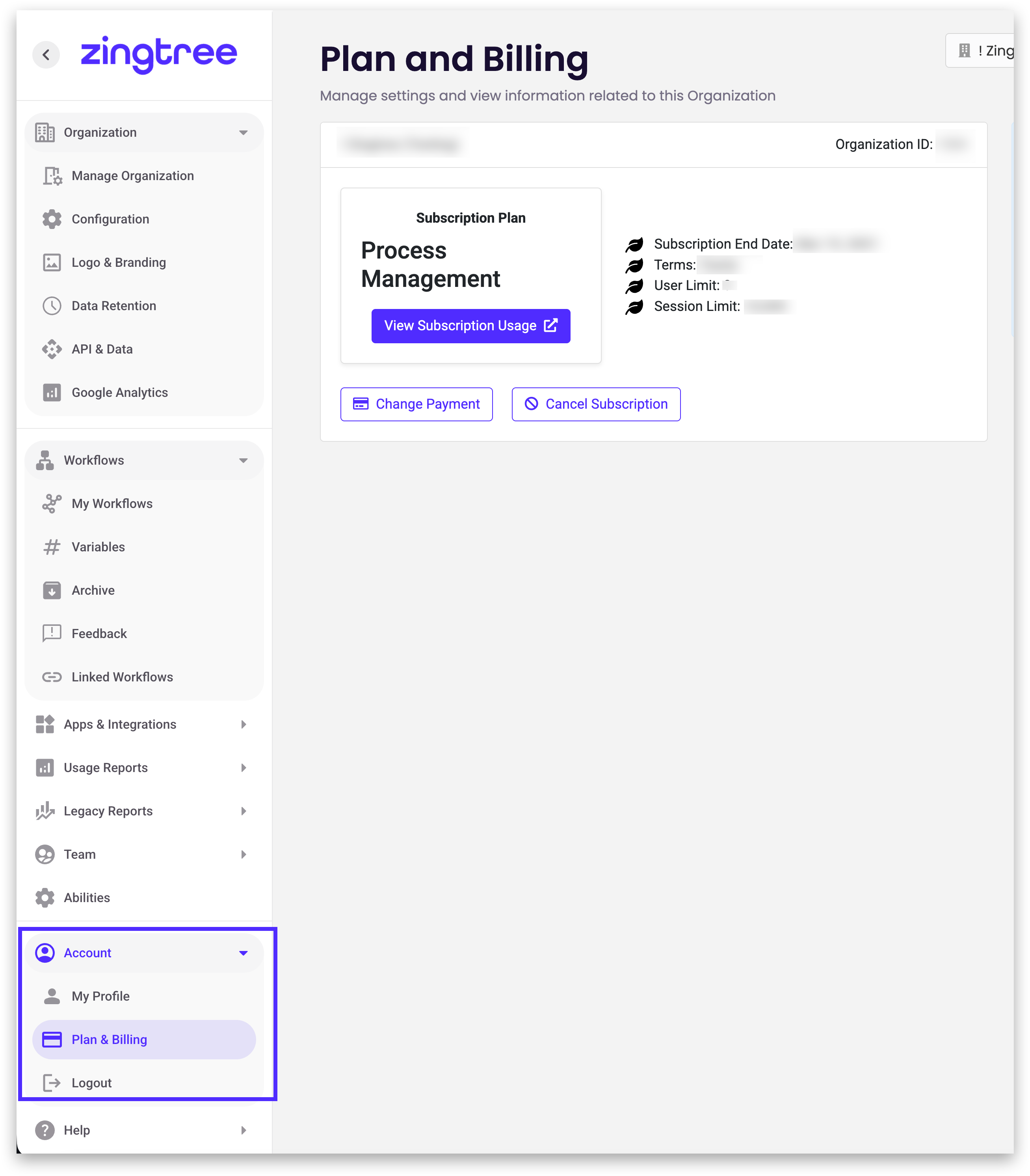 1. Begin by going to Account > Plan & Billing