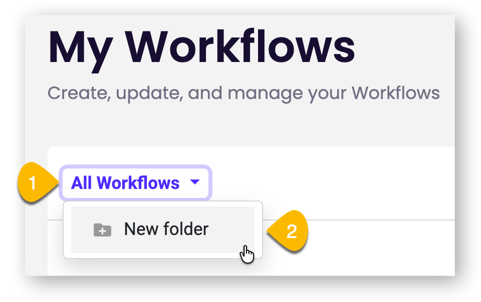 Adding folders to your My Workflows list is an easy way to keep a long list of workflows organized. Here's how you can categorize your workflows into folders.