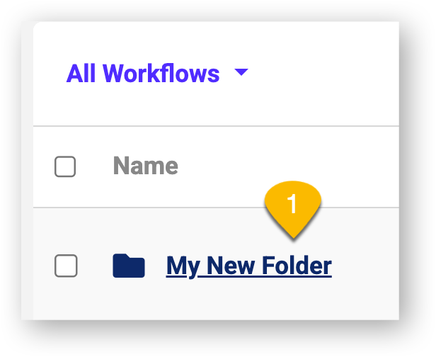 - From your My Workflows page, select the workflow(s) that you'd like to move into a folder, by selecting their checkboxes to the left of the workflow's name.