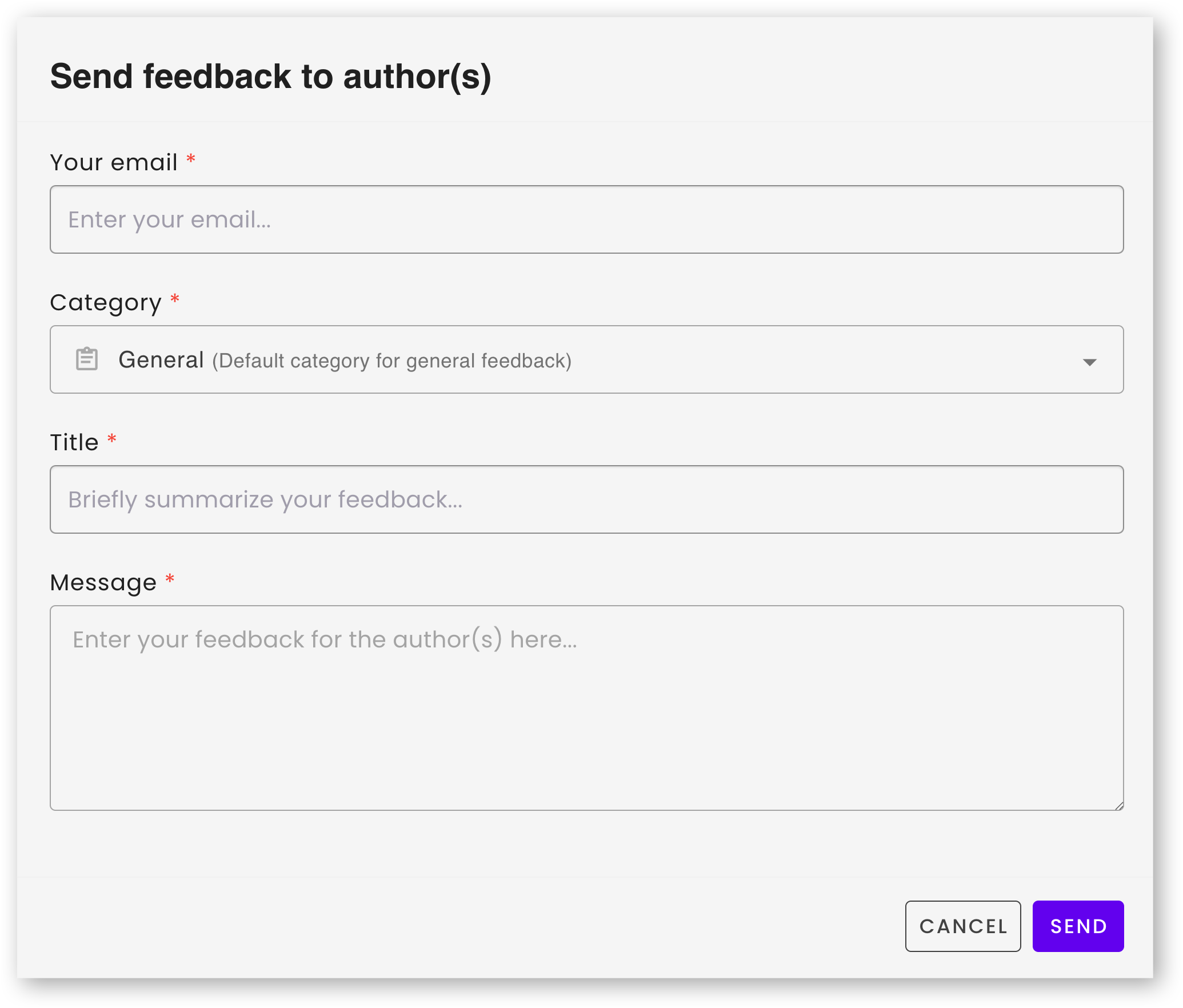 When users submit feedback, they will now select from predefined global categories. This enables authors to quickly understand what type of issue is being reported and prioritize accordingly.